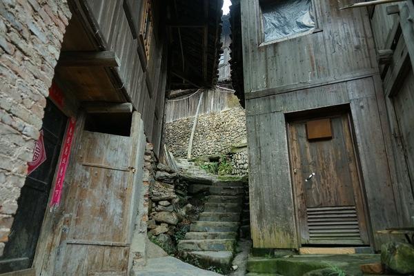 房子密集,道路狭窄,依山势所建,几乎所有的交通工具都难以通过,所以即便有汽车或摩托车,在这种村寨里也进不来,一些年轻人或条件好的都搬到城里或山下居住了。