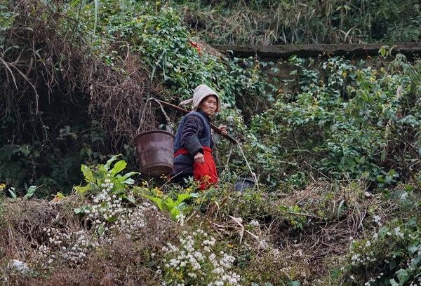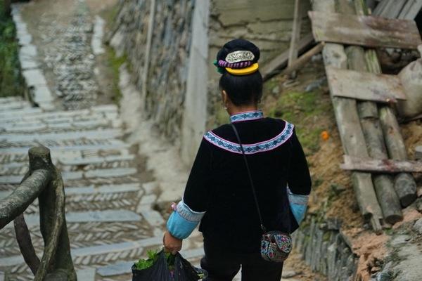 首先遇到一位老太太在给菜地上粪,同城里人不同,这里的老年人似乎终生都是要劳作的,既是勤奋,也是生活的需要。我想同她问问寨子的事,但她说的苗族话我不懂。