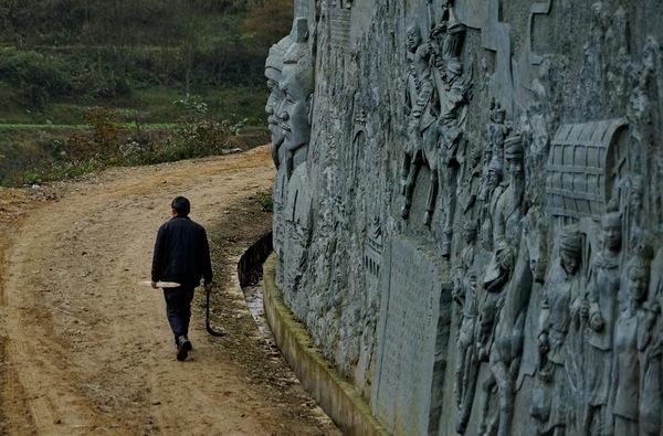 我继续村寨里面行走,山顶上新修了一些雕塑,展示着苗族和村寨的历史与曾有过的美好故事。