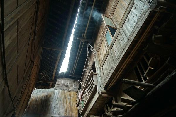 一般吊脚楼都是两层,下面放东西,养牲畜,楼上住人。这种凝结着千百年先民智慧的房屋非常结实耐用,一两百年不腐烂、不倒塌。过去这里树木很多,大片的原始森林,属于就地取材,而现在木制的吊脚楼成本已经很高了。