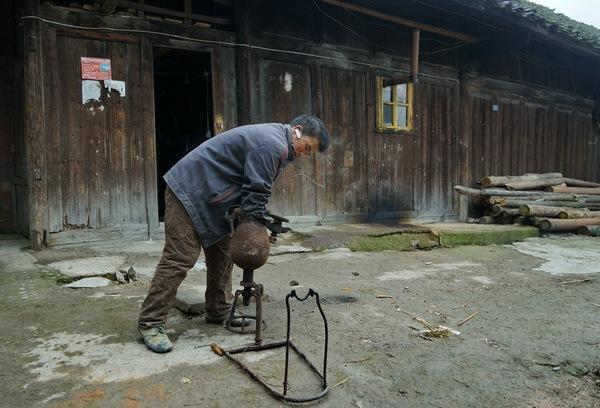 一个维修爆米花工具的人引起我的注意。设备很破旧了,不知用了多少年。