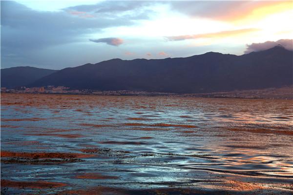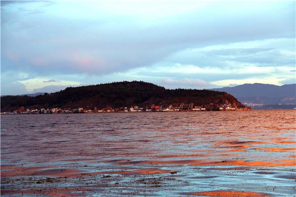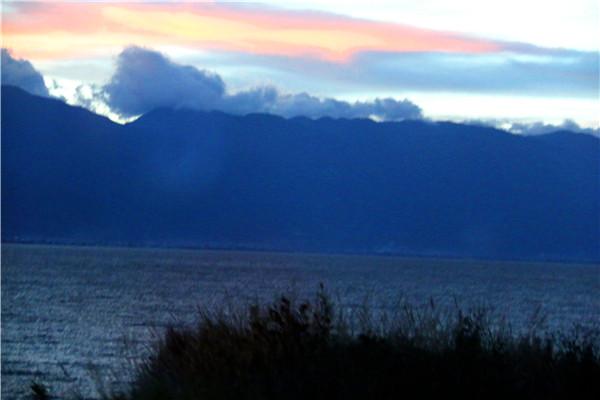 公路上空开始变得有些空旷,而洱海的水面上,也同样变得暗淡。