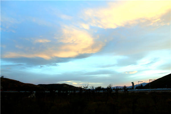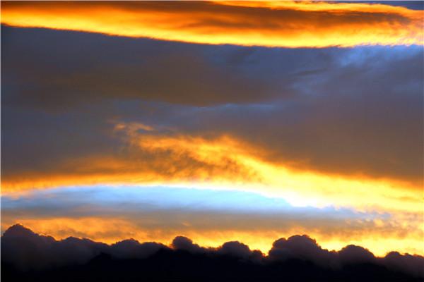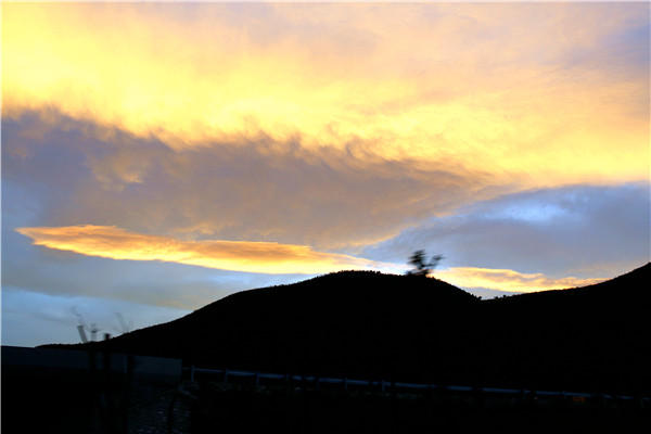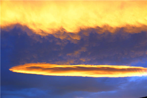 拉近了镜头再单独看那已经被染成了淡黄色白云,如同一个盘旋着的仙人底座,静静的飘荡在天空中,似乎就等着被乘坐而随时向任何方向出发。