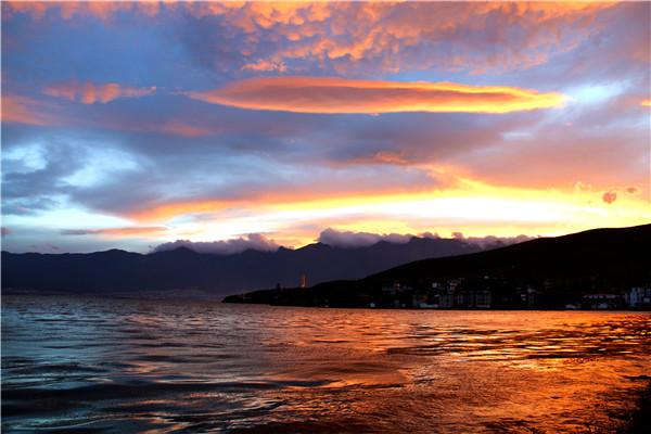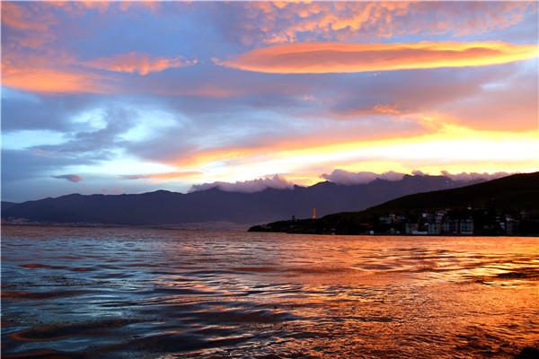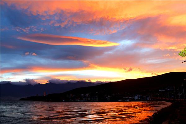 一路上遇到过很多风景,名山大川,但是最为感动的却是无意间在洱海遇到的火烧云。