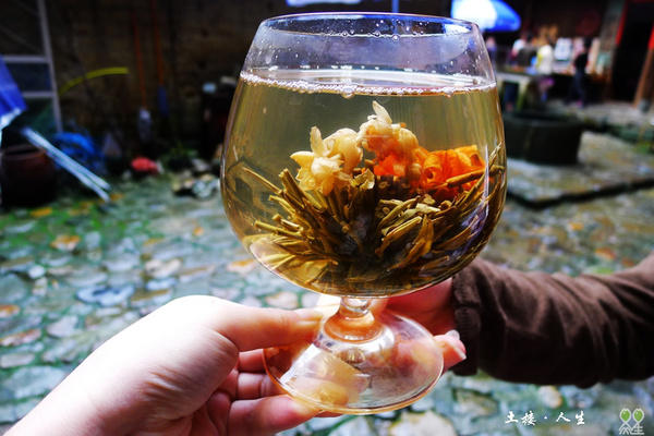 最特别是一种扎呈球状的茶叶,干时看不出丝毫的特别,泡入水中则如绽开的花朵一般,妖娆美丽。
