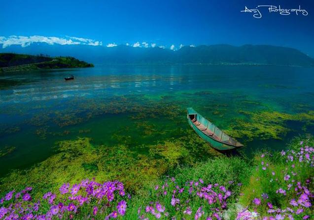 苍山雪,洱海月,洱海月照苍山雪。洱海位于大理古城东侧,青葱的苍山脚下,水色蔚蓝,以无敌的山水美景和湖滨独具风情的各个村镇而闻名于世。洱海边最著名的是东岸的双廊,以无敌湖景而闻名,阳光透过云层,折射在湖水上,形成了“洱海神光”。