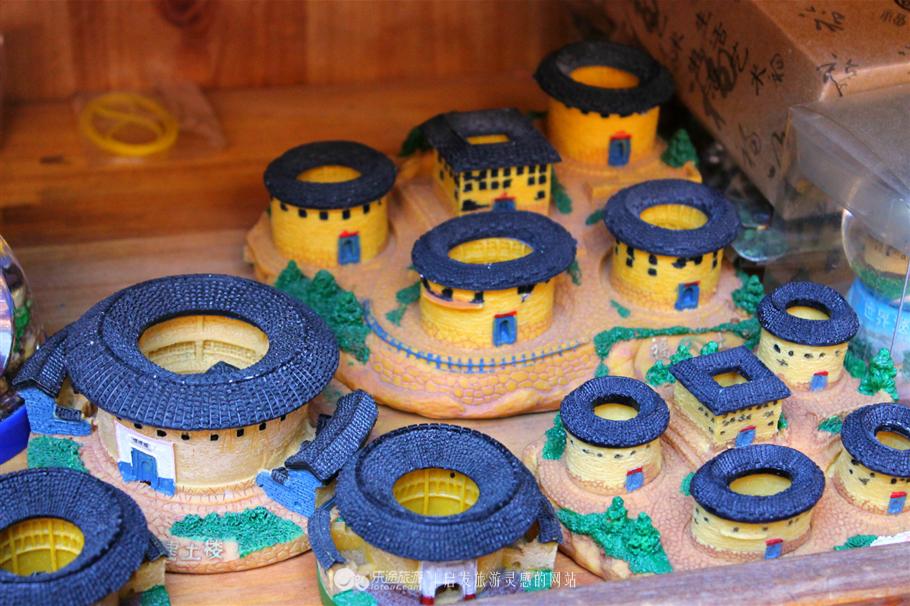 步入天井,顿时觉得凉快不少。土楼特有的结构,令它具备冬暧夏凉的舒适环境。过去客家人为抵御外敌及野兽,在天井储粮。如今却变成旅游纪念品集散地了。