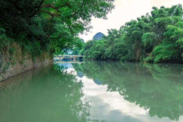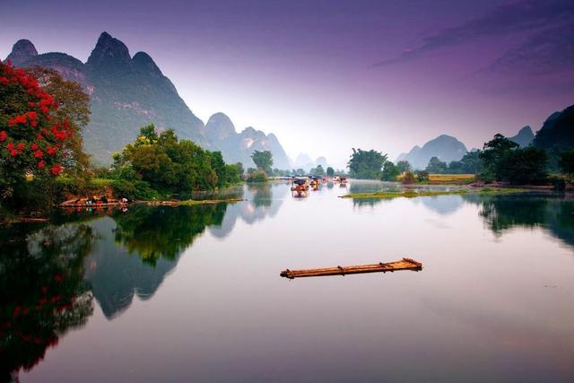 十里画廊为阳朔自助旅游必去之地。坐在竹排上漂流而下,欣赏美好山水。