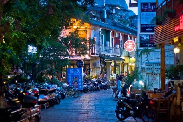西街位于阳朔县城中心,房屋建筑古色古香,地方特色浓厚。荟萃各种旅游纪念品、小吃。其充满了异国情调的夜景更是风情万种,风俗浓郁。