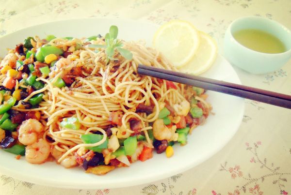 午餐:炒面 荷叶茶