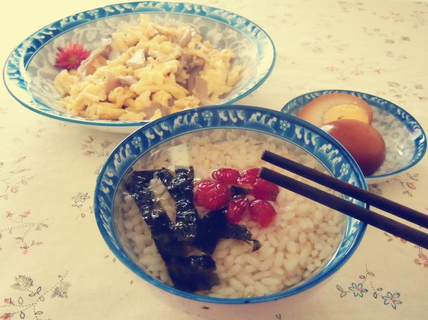 午餐:茶泡饭 平菇炒鸡蛋 卤蛋