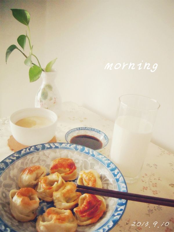 早餐:豆浆 鸡蛋羹 煎饺