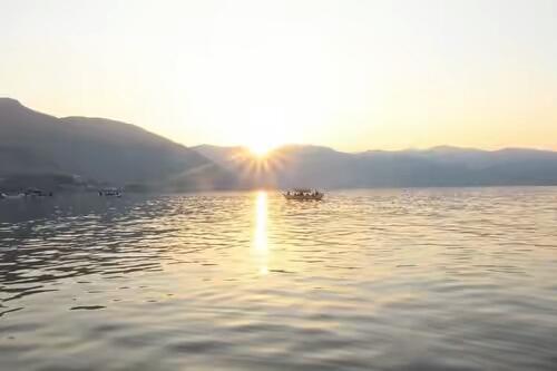 在风平浪静的日子里泛舟洱海,那干净透明的海面宛如碧澄澄的蓝天,给人以宁静而悠远的感受,让人领略那“船在碧波漂,人在画中游”的诗画一般的意境。