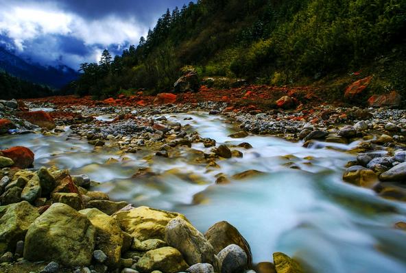 四川海螺沟。万年的冰川邂逅露天的温泉,日照的金山邂逅奇异的砂石,感情在这美好的景色里也会不断升温吧
