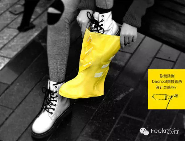 跟蠢蠢的鞋套相比,bearcat的这一件可有设计感多了。虽然起初是《解决雨天上班鞋子的问题》课题项目的产物,但具有时尚感和酷爱旅行的你早已洞悉一切。只在上班路上穿多么无趣,要在旅行途中大放异彩才是真理。切记,旅途下雨也要保持优雅。
