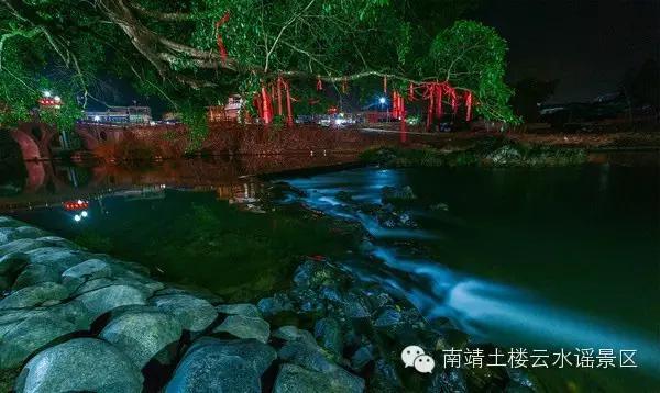 入夜的云水谣却是另外一种世界,也许它跟其他古镇一样,离不开商业的氛围,毕竟有那么多游客要来住宿、要来休闲。于是你能见到是各种歌厅酒吧、露天烧烤,各种灯红酒绿、杯觥交错。只是在云水谣,并不只有喧哗,还有它宁静的一面。约上恋人、朋友,在长教溪边的老榕树下,搬个桌椅,沏上一壶茶,耳边是溪水流淌的声音,唇边是茶的幽香。不时会有小情侣走到溪水边,点燃起手中的烟火棒,在寂静的夜色里勾勒出彩色的图案。