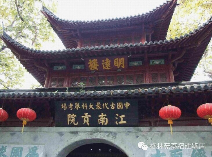 江南贡院是夫子庙地区主要建筑群之一,秦淮河畔也因贡院、夫子庙的存在而一度繁荣起来,是中国最大的科举考场。其鼎盛时期仅考试的号舍就拥有20644间,加上官房、膳房、库房、杂役兵房等数百间,占地超过30万平方米,其规模之大、占地之广居全国各省贡院之冠,创造了古代科举考场中国之最。贡院中的南京市江南贡院历史陈列馆是我国唯一的一座以反映中国科举考试制度为内容的专业性博物馆。
