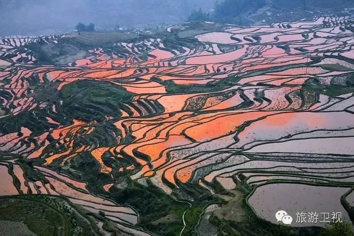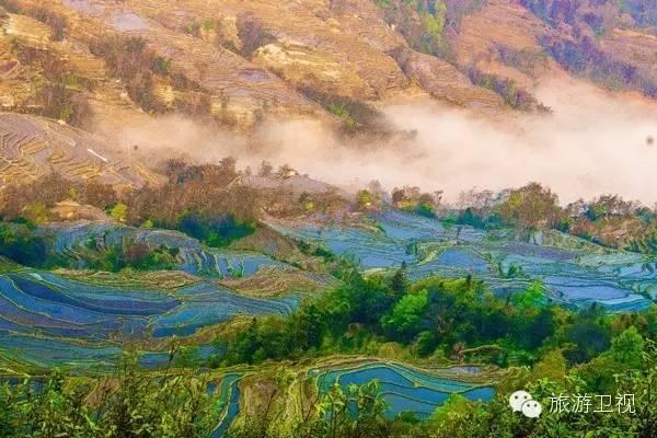 多依树景区包括多依树、爱春、大瓦遮等连片的上万亩梯田。在很多拍摄元阳的照片中,看到最多的地方就是多依树,这里的梯田像版画一样,颜色多变,壮观美丽,特别是日出之际,眼前水面上不断变化的颜色让人目不暇接,衬着烟雨迷雾下若隐若现的多依树村庄,让人有种进入仙境之感。