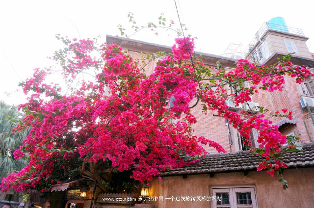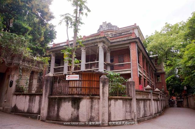 岛上坐落着风格迥异的异国建筑,