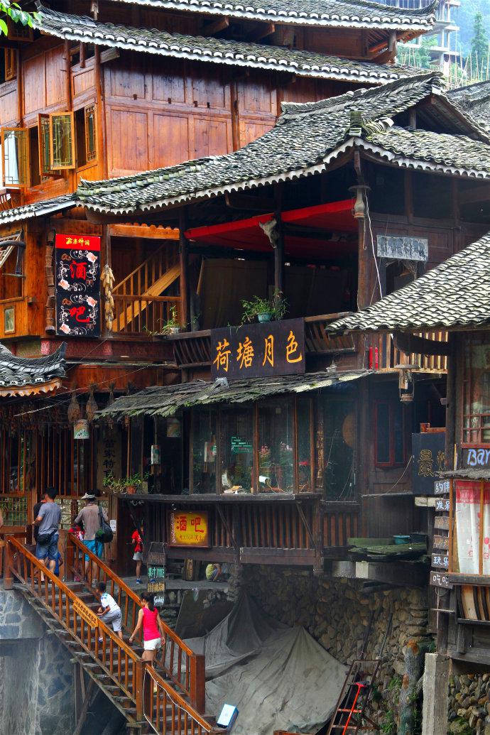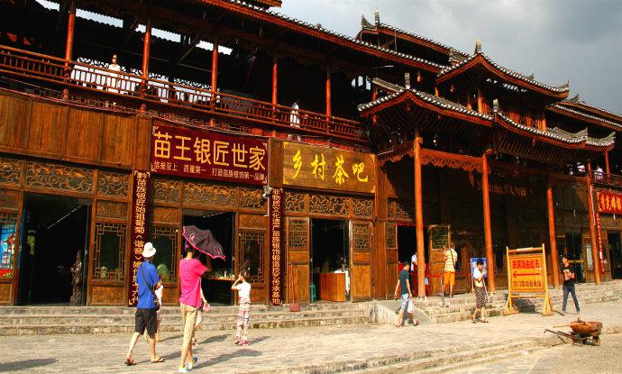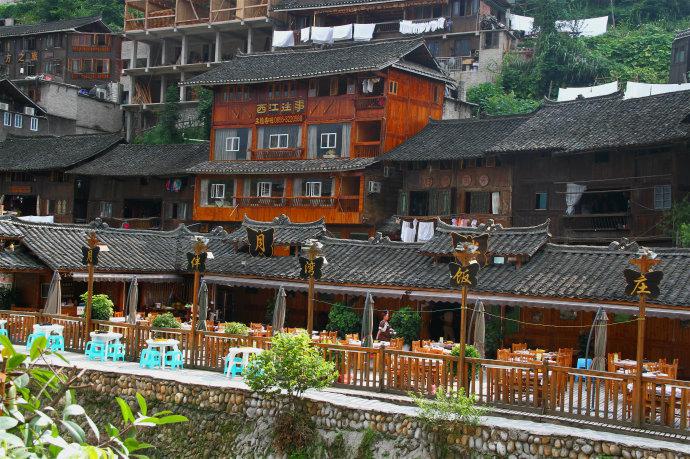 苗家临街的吊脚楼。喜欢这样的色调和格局。
