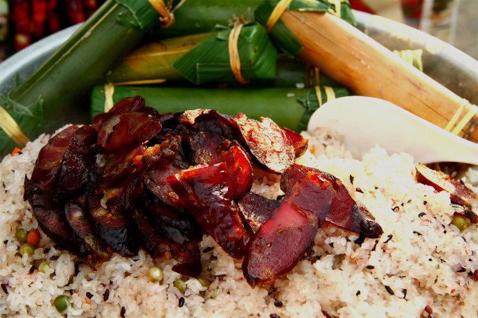苗家的特色饭,腊肉蒸咸饭,味道美极了!