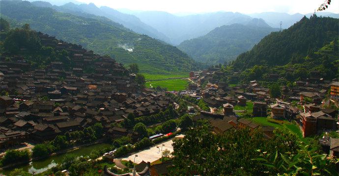 当你站在西江苗寨的观景台上,向远处望去,白水河将整个苗寨一分为二,蜿蜒的穿过参差跌落的村寨,远处的梯田高低错落,晨烟四起的西江,美在时光的流过的记忆中。