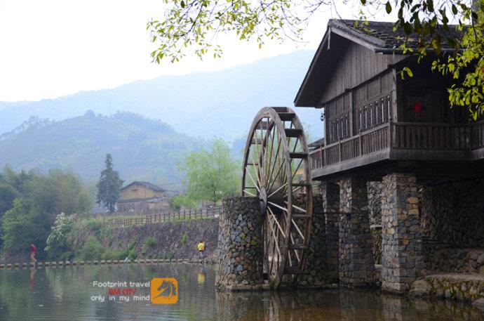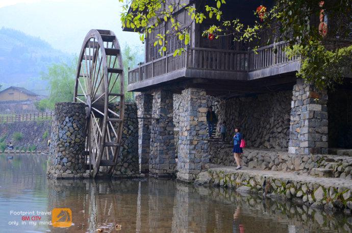 小河流水旁,有一水车,大概算此处的标志吧。但凡旅人,均会驻足合影(《云水谣》的主景地)。