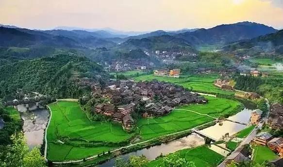 西江千户苗寨的苗族建筑以木质吊脚楼为主,这些源于上古的干栏式建筑与周围的青山绿水和田园风光融为一体,具有很高的建筑学、美学价值。
