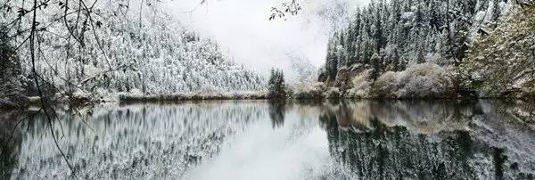 冬日的九寨沟山峦与树林银装素裹,树正群沟依旧一片蓝绿一片绿蓝,只是多了点白雪的点缀。