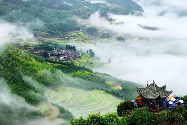 南尖岩海拔1100—1626米,最高气温不超过35℃,空气清新,全年平均有雾日约200天,形成了奇独的云海、日落、长虹、雪景、雾淞、冰挂等天象景观。这里的梯田与茗岙比,你更喜欢哪个呢?